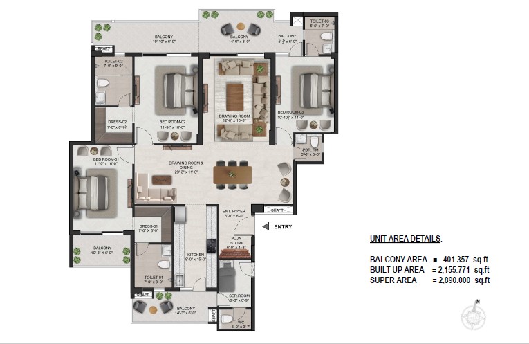 The Eden Park 3+S BHK 2890 Sq.Ft Layout